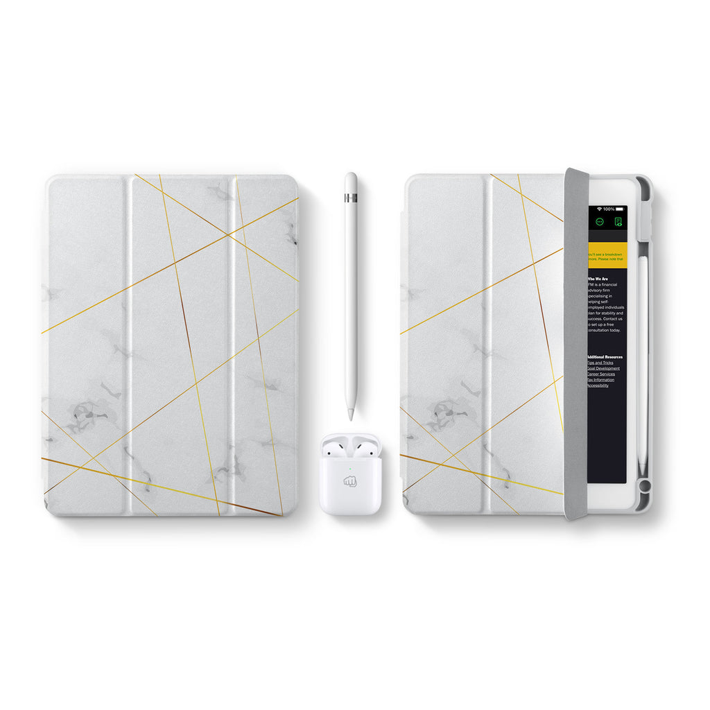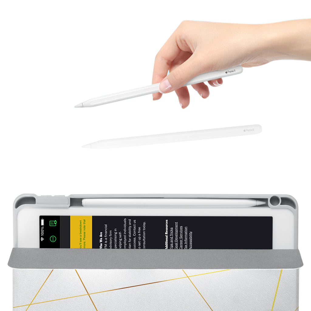 Vista Case iPad Premium Case with Marble 2020 Design has an integrated holder for Apple Pencil so you never have to leave your extra tech behind. - swap