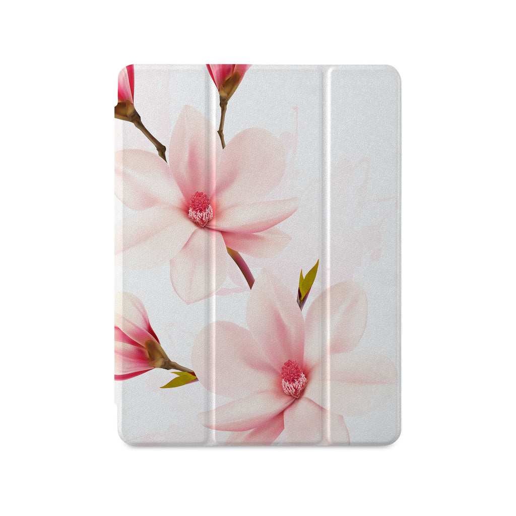 Vista Case iPad Premium Case with Pink Flower 2 Design has trifold folio style designed for best tablet protection with the Magnetic flap to keep the folio closed.