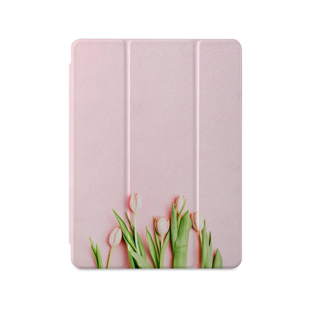 Vista Case iPad Premium Case with Pink Flower 2 Design has an integrated holder for Apple Pencil so you never have to leave your extra tech behind. - swap