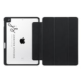 The clear, scratch-resistant iPad 360 Elite case with Black Flower design displays your iPad, while the versatile folio with interior accent color guards your touchscreen. The folio seamlessly folds out of the way and converts to multiple stand angles for comfortable typing and hands-free viewing. And the sleek elegant design features discreet Apple Pencil storage. ✓Monogram ✓Personalized Gift ✓Made to Order