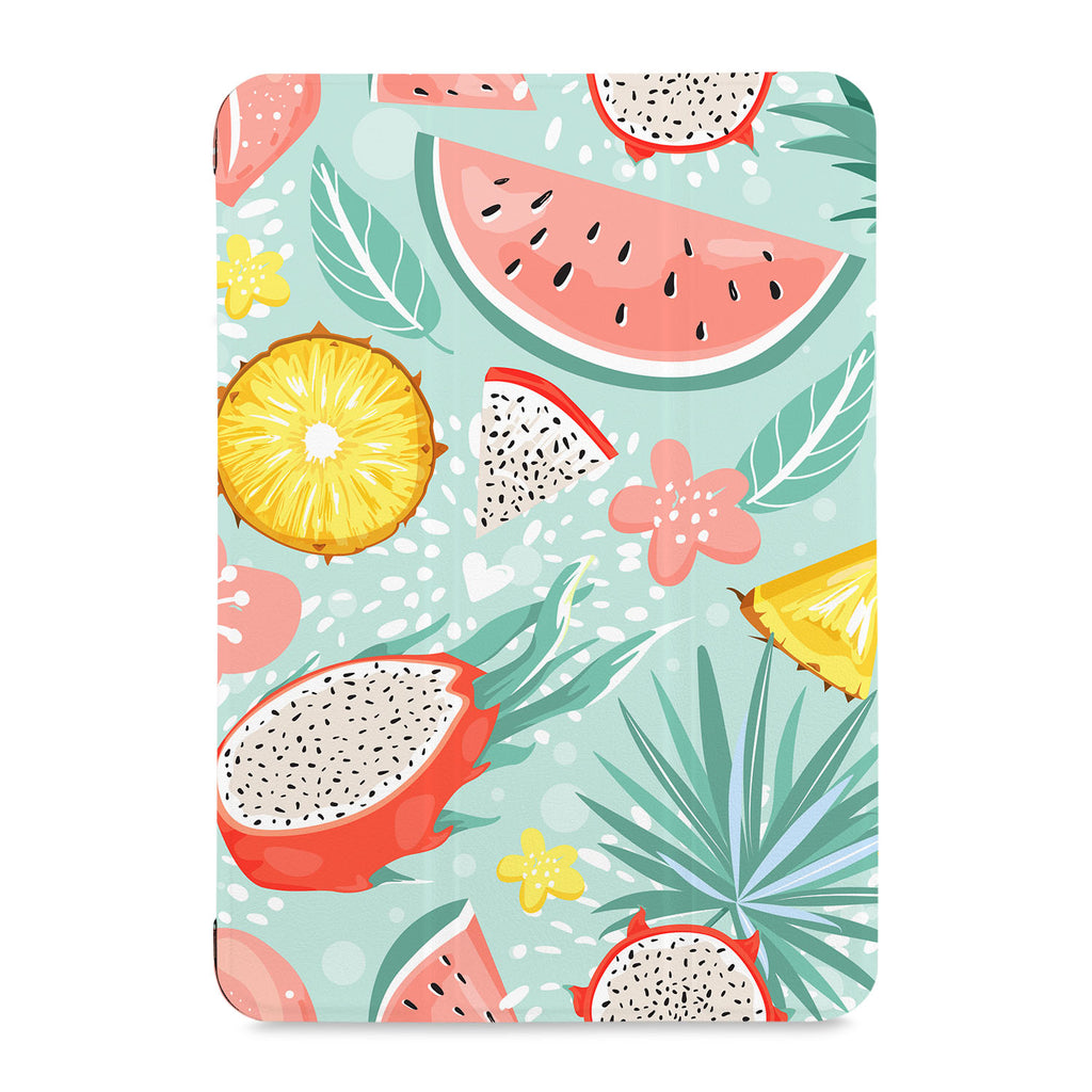 It automatically wakes your iPad when opened and sends it to sleep when closed with Tropical Fruits design